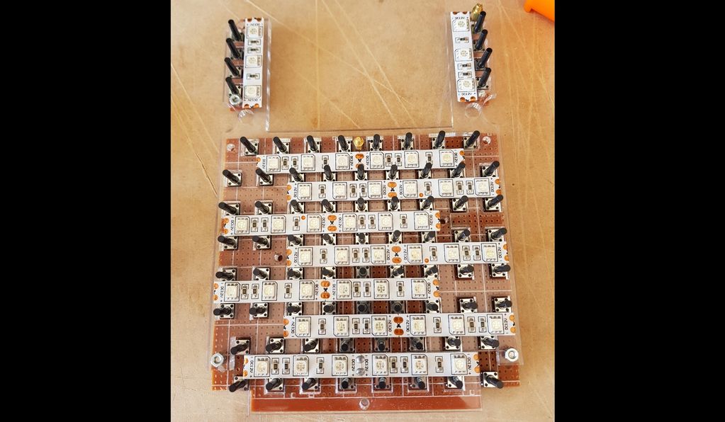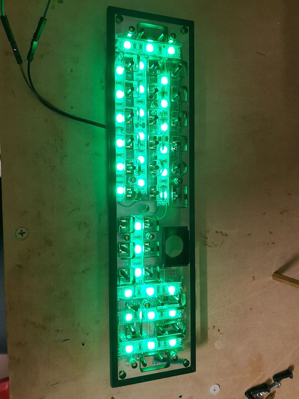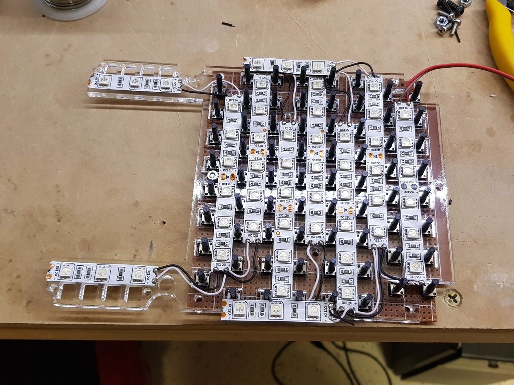 How it looks with the panel and buttons on top. The light bleeding around the number buttons is because they are not yet mounted properly, just resting in place for the photo.