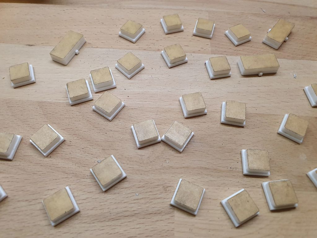 A selection of buttons glues and ready for paint. You can see the design of the longer rocker style buttons.