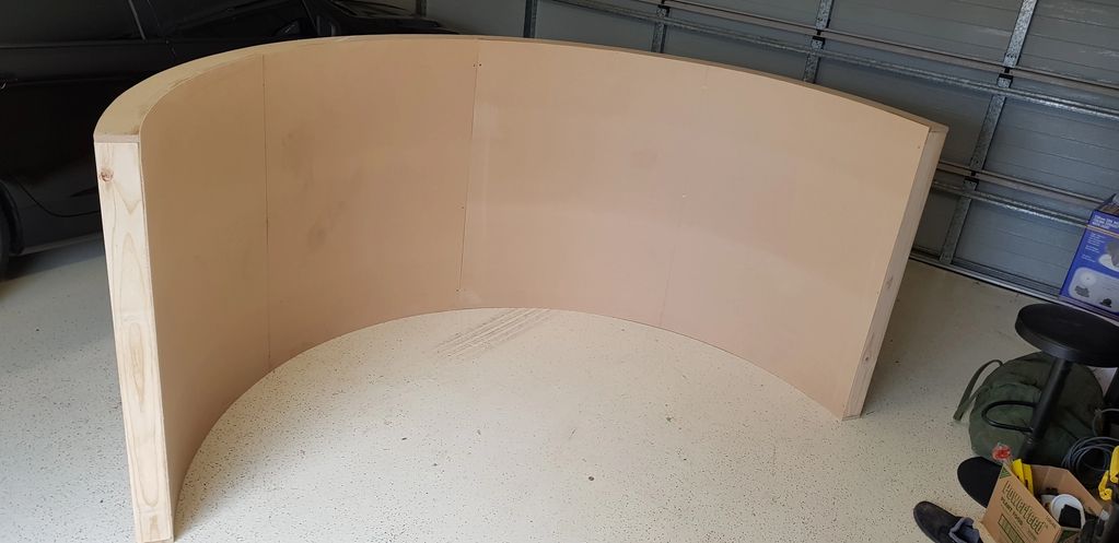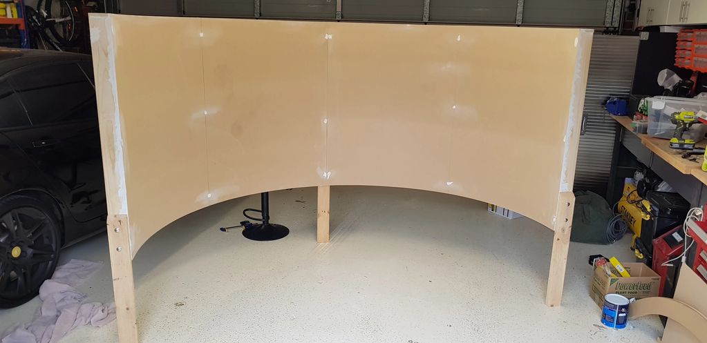 So I made the decision to never buy from that company again and design and build my own screen surface. I visited many home theatre forums, and saw that people were using sheets of MDF as pretty decent looking flat home cinema screens. I figured I could do the same thing but curved.