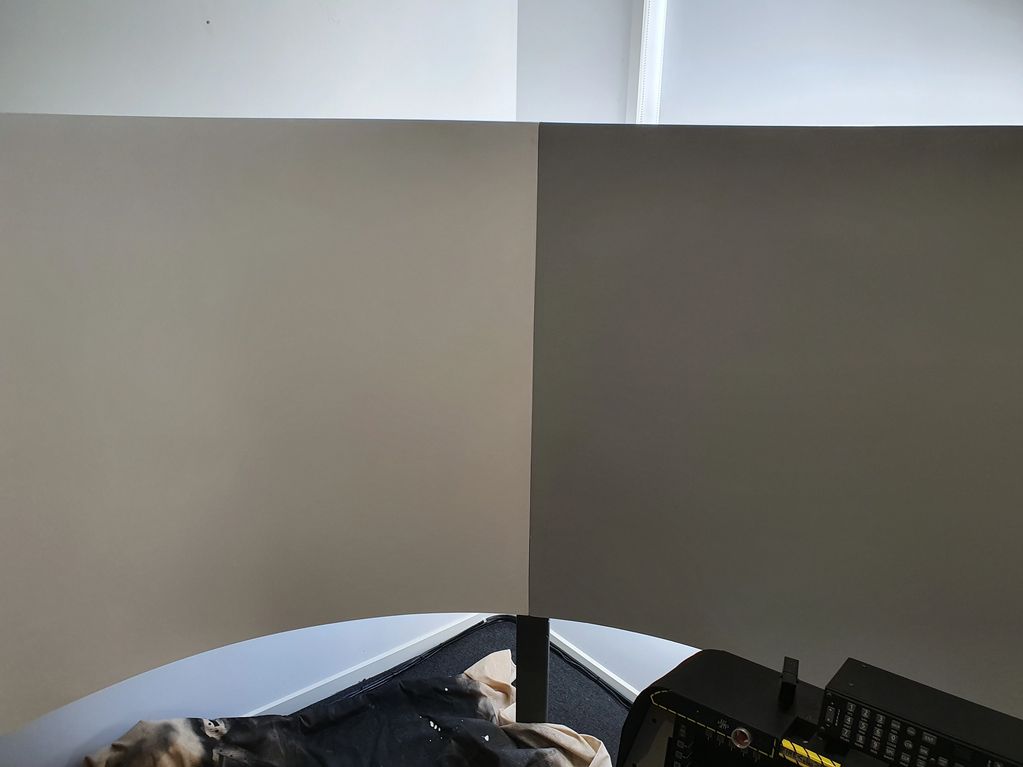 I am absolutely not an audiophile or projector specialist, but to my normal human eyeballs the difference was definitely an improvement to a plain white painted surface. The contrast and color was improved, and it just looked better. The mix above was enough to do the two coats on each of the three 90 degree sections, so all up it covered 5.65 meters with a little bit left over if i ever need to touch it up
