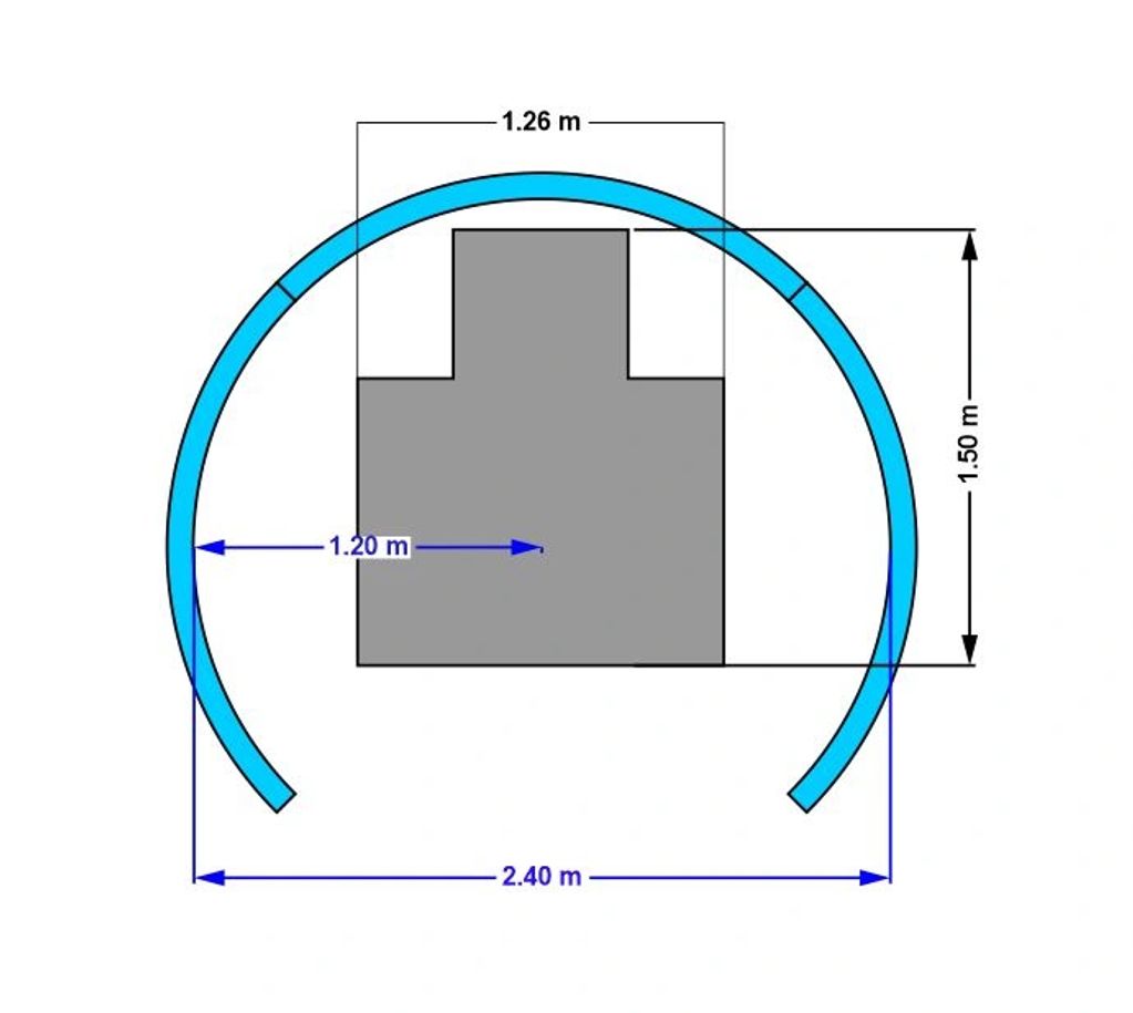 Top down view of the screen setup. The grey section is the outline of the cockpits footprint.
