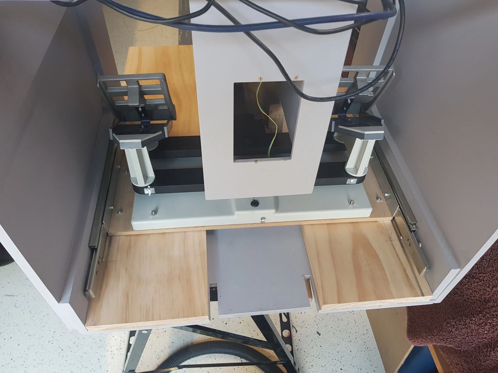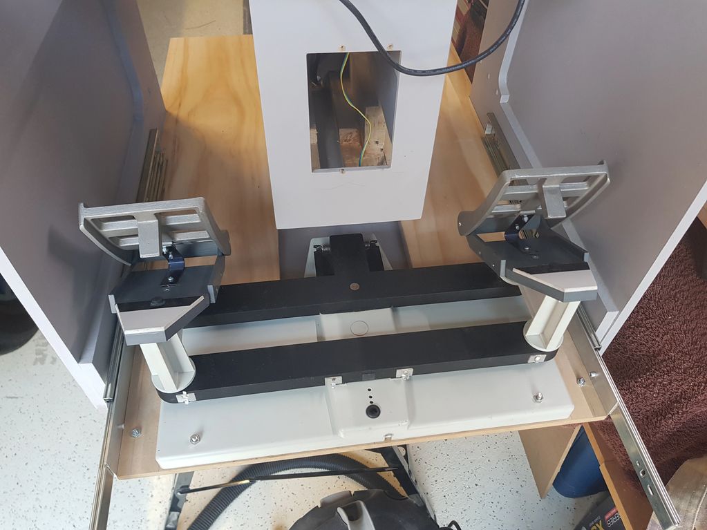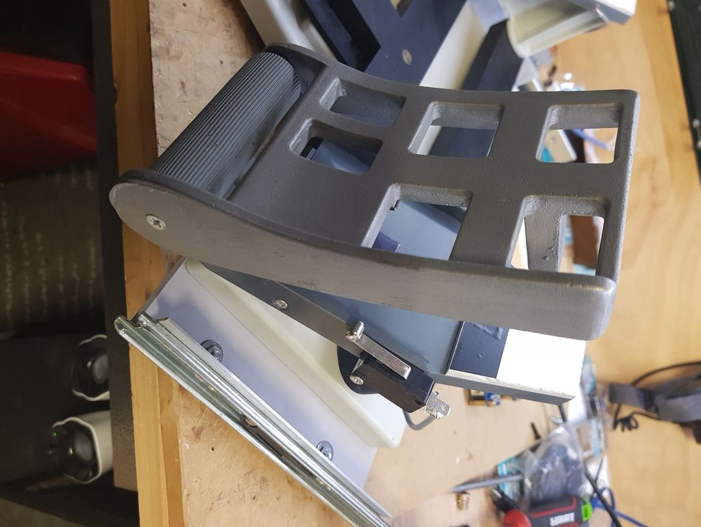 I mounted them to the pit by drilling some holes in the plastic casing, bolting it to a draw system with some drawer sliders. This means they are adjustable. They lock inplace with a bolt that just drops in place, however i have fount that they are stiff enough to stay in place anyway. Here they are in the fully forward position, for a short pilot.